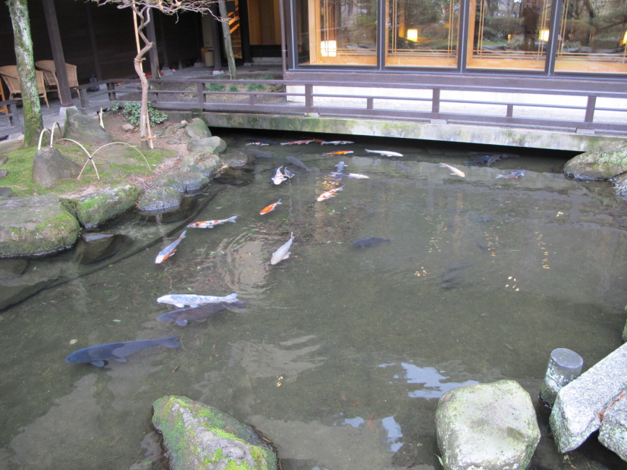 池の水もぬるんだのか、地下水の出る井筒の側に集まっていた鯉たちも動き始めました。